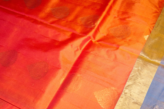 Orange Gold Kanjivaram Zari Warp Designer Handloom Silk Saree