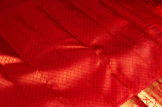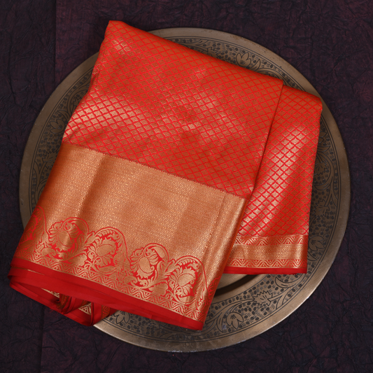 Orange and Red Kanjivaram Pure Silk Bridal Saree