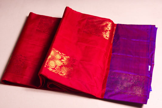 Red and Gold Pure Kanjivaram Plain Silk Saree