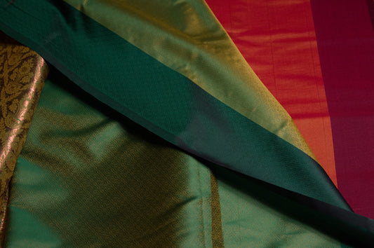Deep Red and Green Kanjivaram Semi Silk Saree