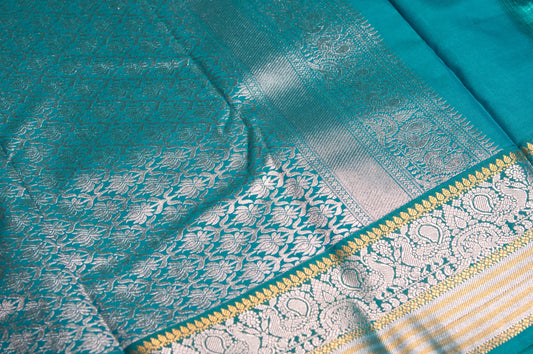 Teal and Orange Rani Kanjivaram Semi Silk Saree