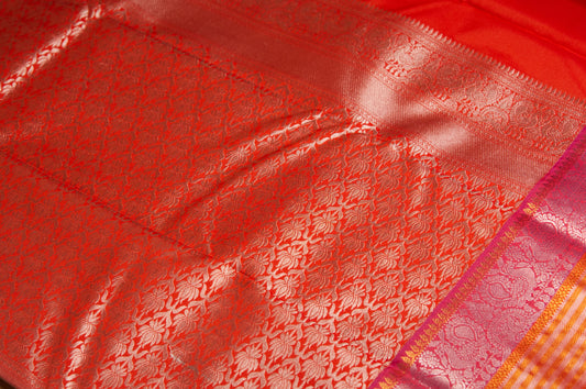 Purple and Orange Rani Kanjivaram Semi Silk Saree