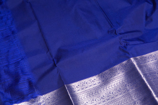 Red and Navy Blue with Silver Zari Kanjivaram Semi Silk Saree